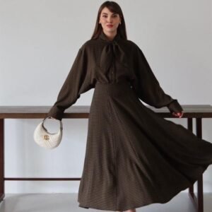Élégante et confortable, cette jupe longue beige est un indispensable du dressing féminin. Sa coupe fluide met en valeur la silhouette tout en offrant une grande liberté de mouvement. La ceinture intégrée souligne délicatement la taille pour une allure féminine et raffinée, idéale aussi bien pour une tenue décontractée que plus habillée.