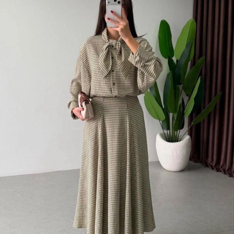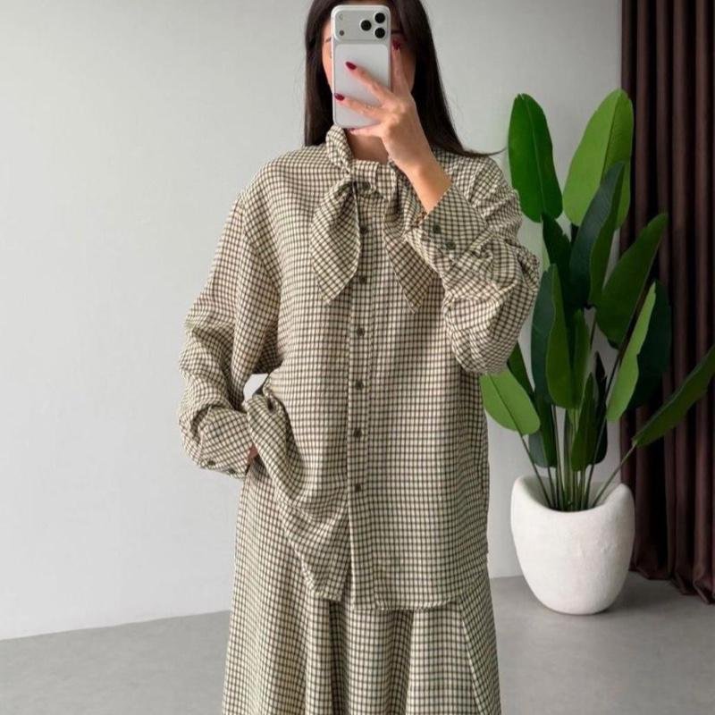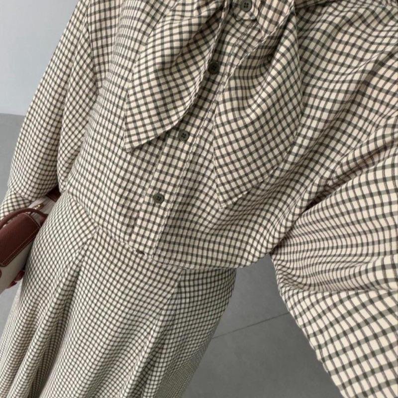 Apportez une touche d’élégance à votre tenue avec cette chemise à carreaux dotée d’un nœud délicat au niveau du col.