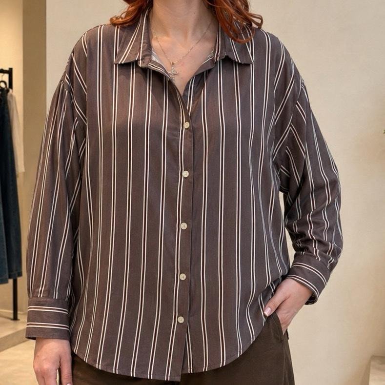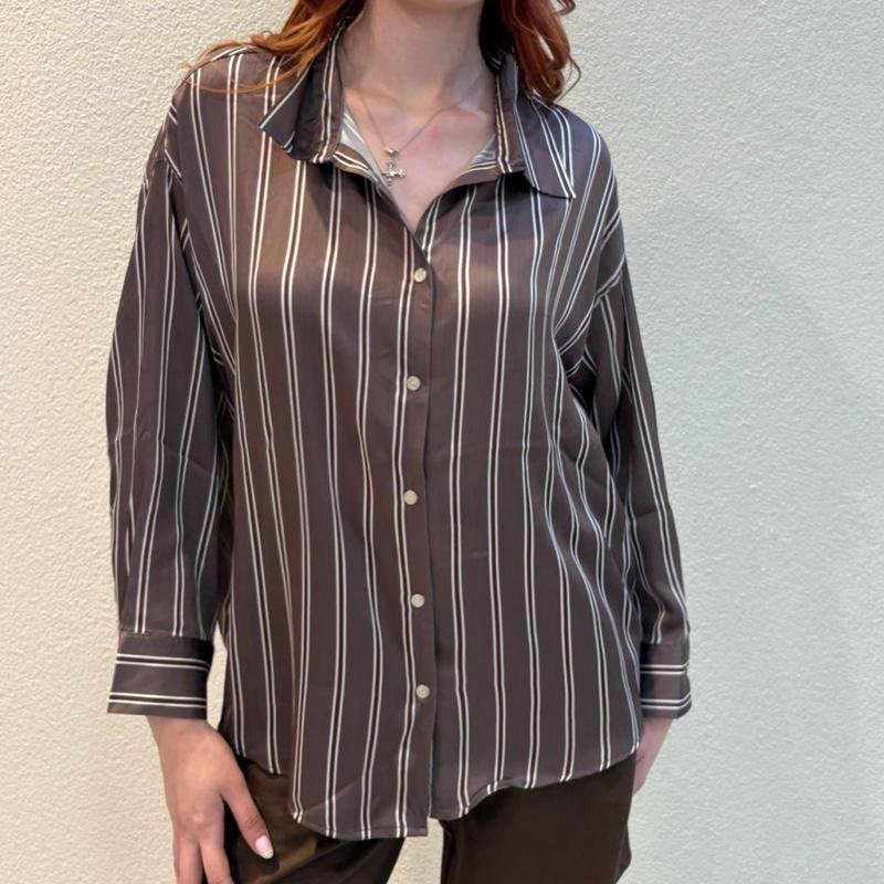 Alliez élégance et confort avec cette chemise satinée à rayures, spécialement conçue pour sublimer les silhouettes grande taille. Son tissu fluide et légèrement brillant apporte une touche sophistiquée tout en restant agréable à porter.