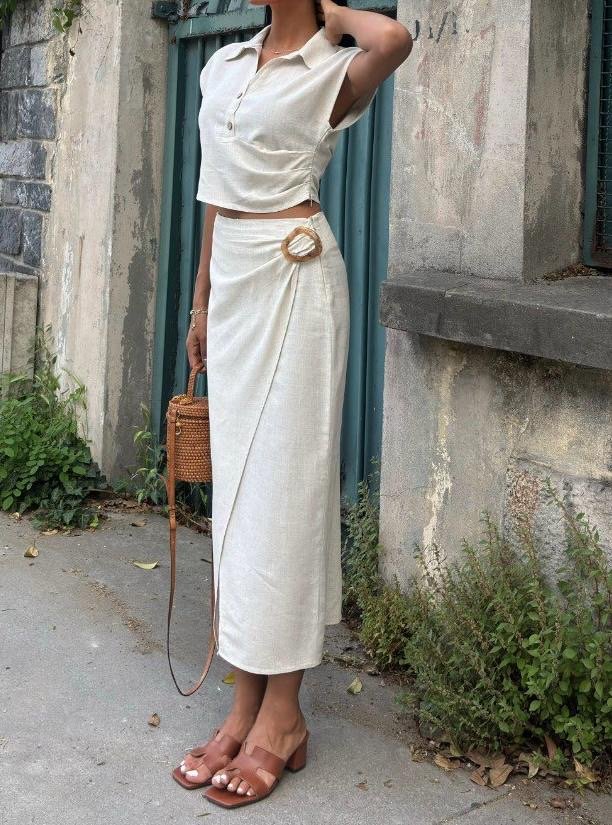 Apportez une touche de fraîcheur et d’élégance naturelle à votre garde-robe avec cet ensemble en lin, conçu pour allier confort et style. Fabriqué à partir d’un tissu léger et respirant, il est idéal pour les journées ensoleillées comme pour les soirées estivales.