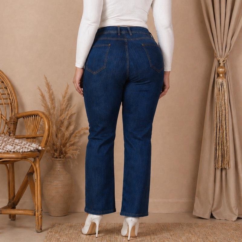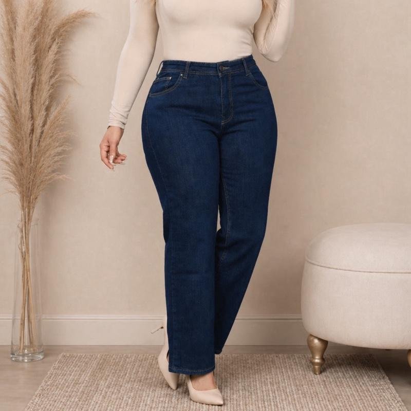 Alliez confort et style avec ce jean coupe droite spécialement conçu pour sublimer les silhouettes grande taille. Sa coupe droite classique équilibre les proportions et offre une allure moderne tout en garantissant une grande liberté de mouvement.