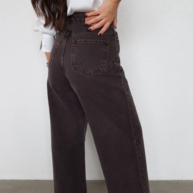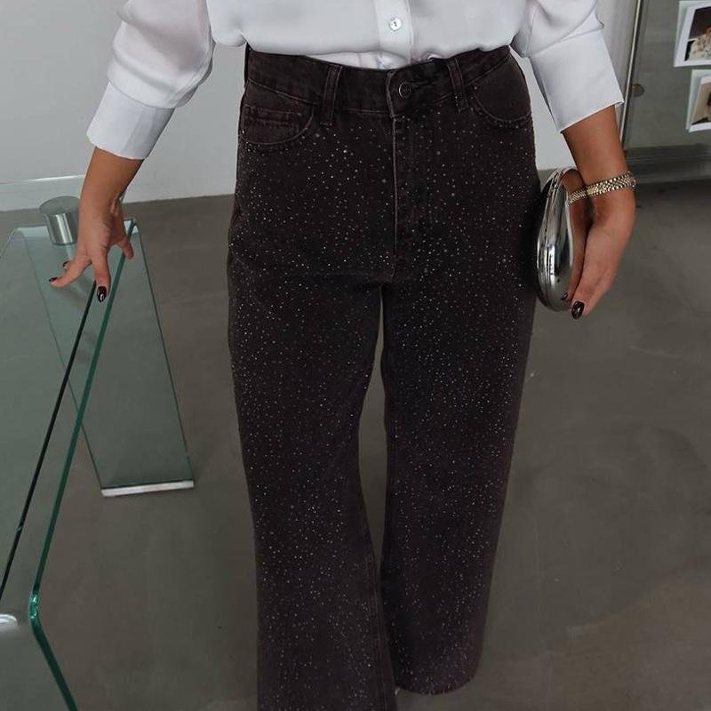Affirmez votre style avec ce jean marron à strass femme, une pièce originale qui allie modernité et féminité. Les strass délicatement appliqués apportent une touche lumineuse et sophistiquée, idéale pour sublimer vos tenues du quotidien comme vos looks de soirée.