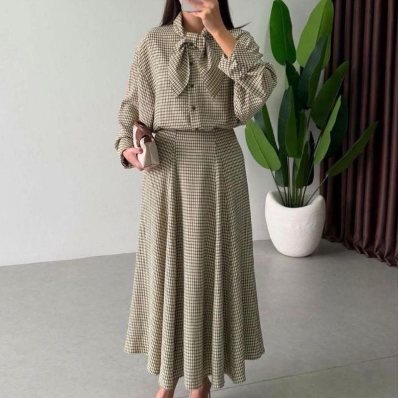 Apportez douceur et élégance à votre dressing avec cette jupe longue fluide à carreaux vert & crème, parfaite pour une allure naturelle et raffinée.