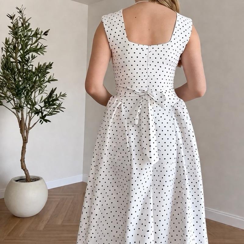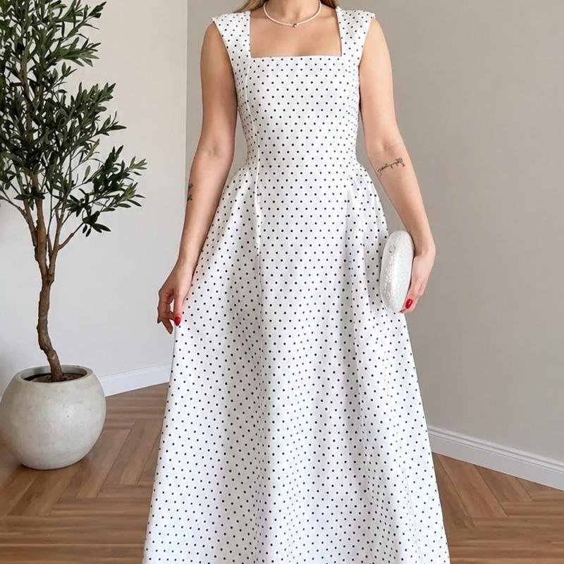 Adoptez une allure féminine et élégante avec cette robe à petits pois, pensée pour sublimer naturellement la silhouette. Sa coupe recentrée à la taille met en valeur vos formes tout en apportant une touche structurée et raffinée.
