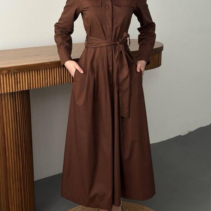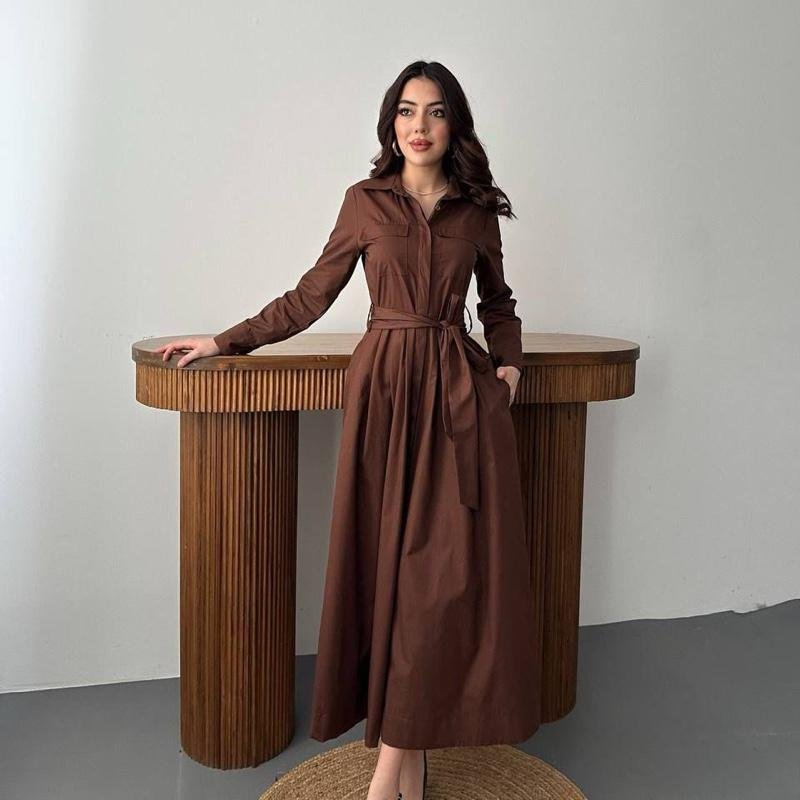 Laissez-vous séduire par cette robe brune élégante, pensée pour sublimer votre silhouette avec simplicité et raffinement.