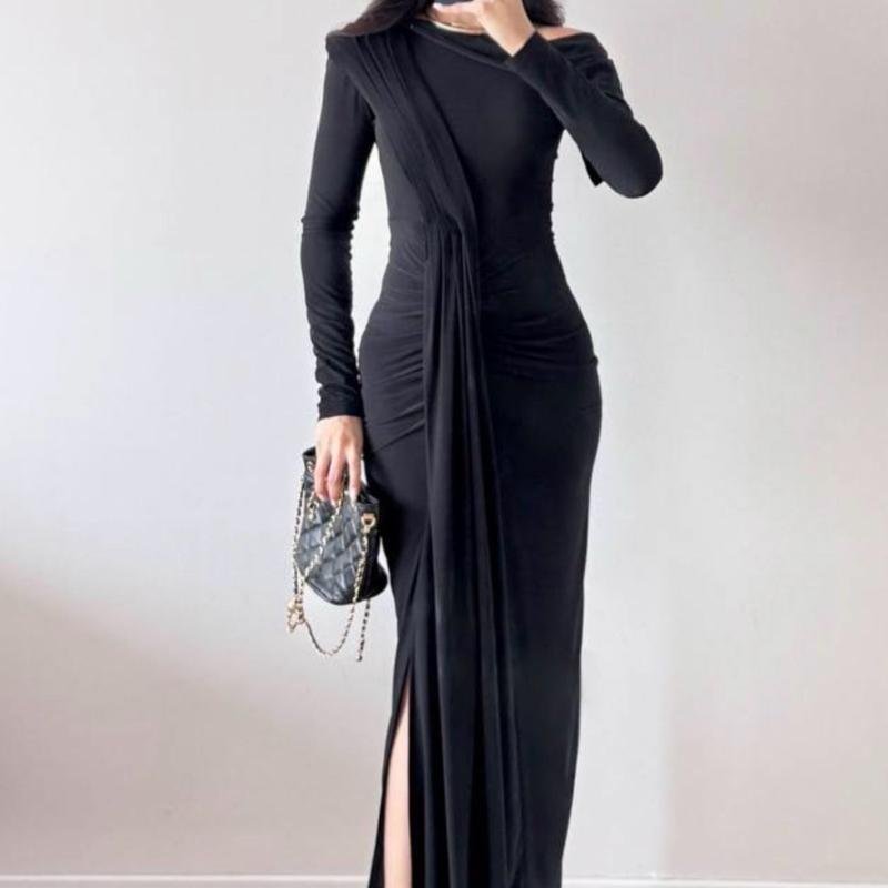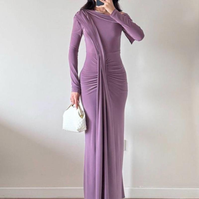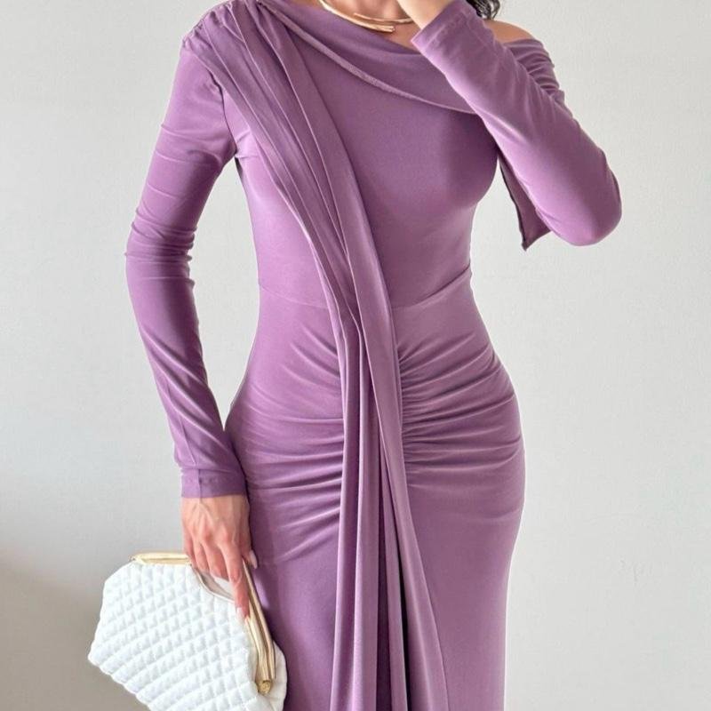 Robe de soirée drapé et à épaule tombante | Lila – Noir