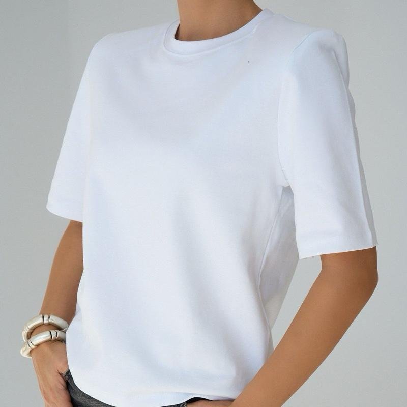Ses épaules structurées apportent du caractère à votre silhouette et créent un effet élégant instantané, tout en conservant le confort d’un t-shirt classique.
