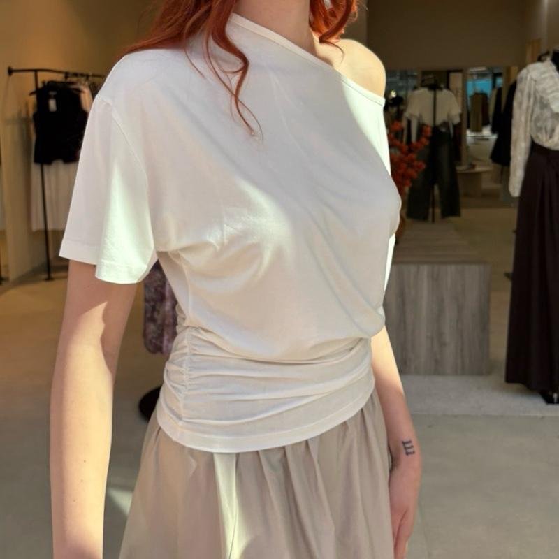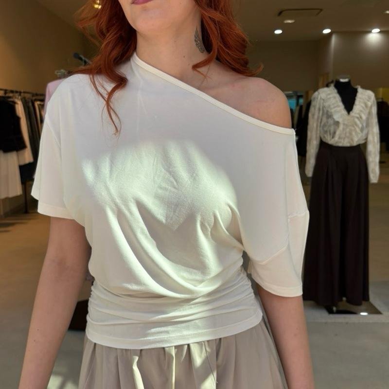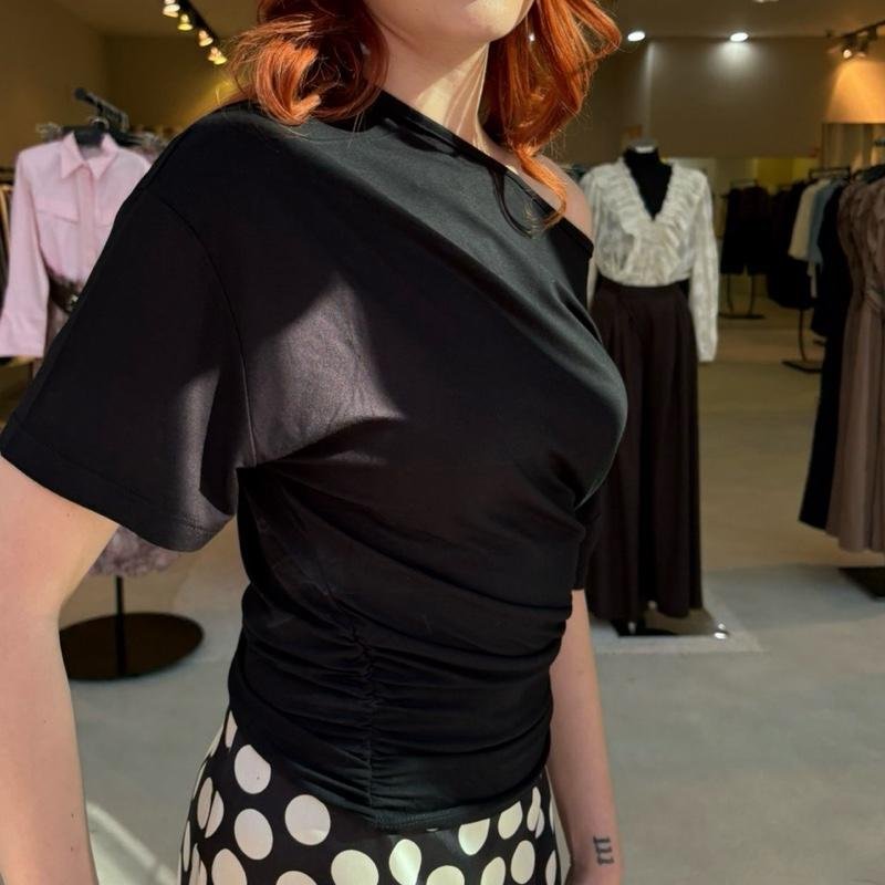 Affirmez votre féminité avec ce top à une épaule dénudée, une pièce audacieuse qui apporte instantanément une touche sophistiquée à votre tenue. Son design asymétrique met en valeur la ligne des épaules et crée une silhouette moderne et élégante.