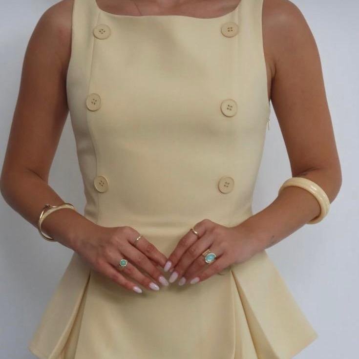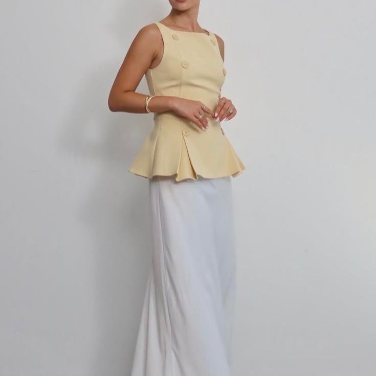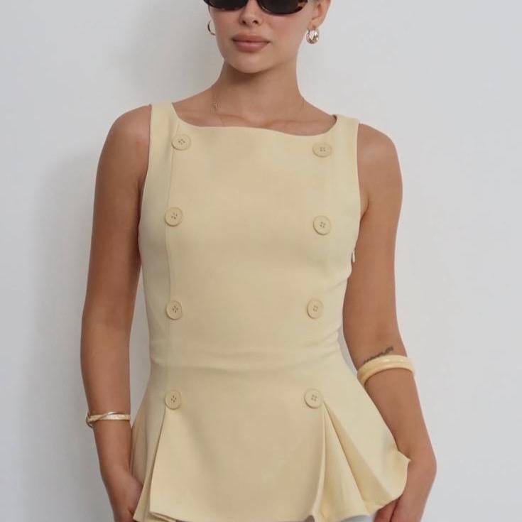 Top jaune à boutons avec une coupe évasée sur le bas, apportant une touche féminine et légère à votre tenue. Sa matière douce et légèrement stretch assure un confort optimal tout au long de la journée.
